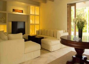 Pristine white beach at the door, lush gardens around and a small fishermen’s village nearby.